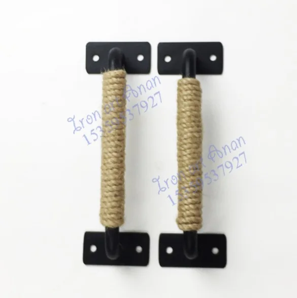 Free Shipping 2Pieces/Lot L:200MM Industrial Style LOFT Hemp Rope Handle Barn Door Wooden Sliding Door Iron Handle