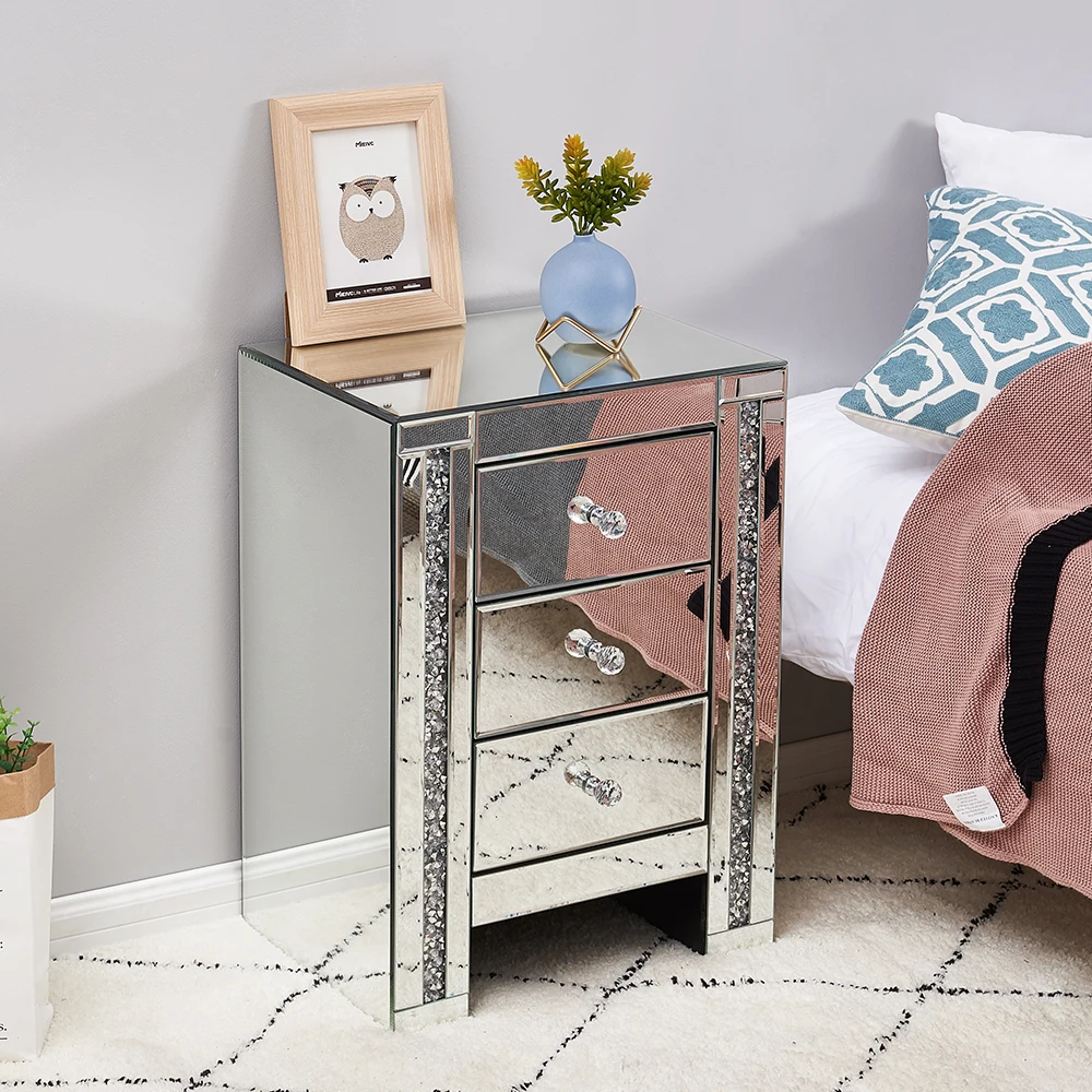 Best Panana Bedroom Furniture Sparkly Mirrored Crushed Crystal 3 Drawer Bedside Cabinet Table Chest of Drawers Family Gifts