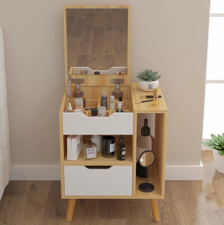 Get Nordic modern wood dresser nightstand bedroom furniture dressing table with mirror drawer mini bedside table